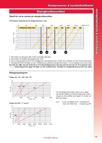 Exempel: Hur väljer man rätt storlek för en 10 m lång luftslang med en diameter på 8 mm (se linjen för 10 m slang här ovan).