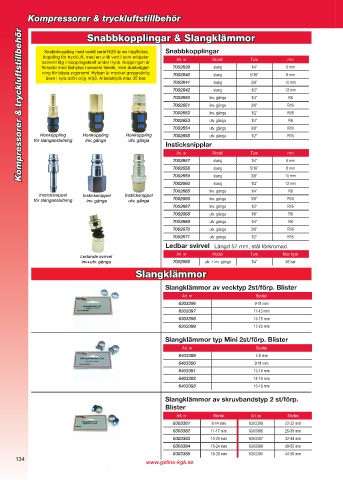 koppling för tryckluft, med en unik ventil som erbjuder Art. nr Modell Tum mm