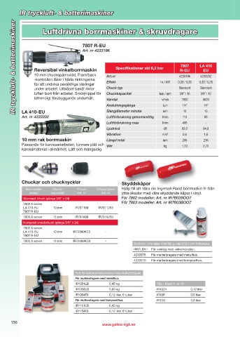 Reversibel vinkelborrmaskin Specifikationer vid 6,2 bar R-EU EU