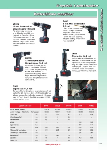 För all borrning och skruv- skinen i trånga utrymmen. IR tryckluft- & batterimaskiner