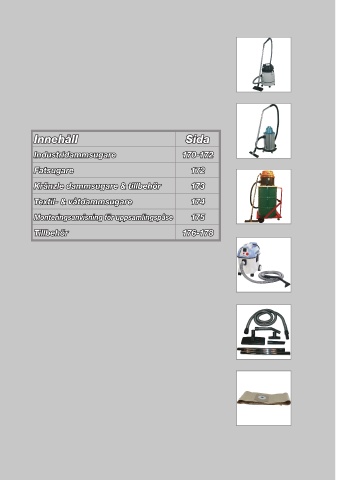 Innehåll Sida Industridammsugare 170-172 Fatsugare 172 Kränzle dammsugare & tillbehör 173 Textil- & våtdammsugare 174 Monteringsanvisning för uppsamlingspåse 175 Tillbehör 176-178