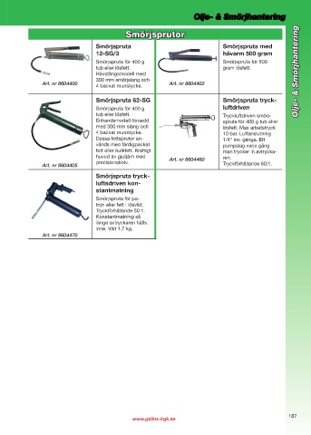 tub eller lösfett. Tryckluftdriven smörj-