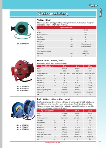 Vindor med slang 201-205 önskad längd eller automatisk inrullning.