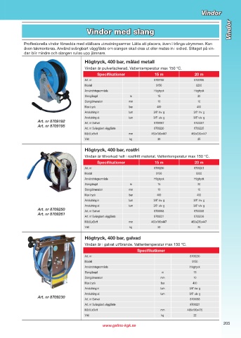 även takmonteras. Använd svängbart väggfäste om slangen skall dras ut eller matas in i sidled. Slitaget på vin-
