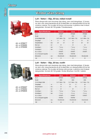 Stora slangvindor som levereras utan slang, men med slangstopp. Vi levere-