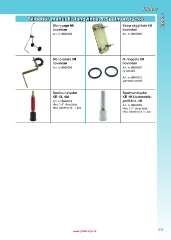 Tillbehör manuell slangvinda & Spolmunstycke Vindor