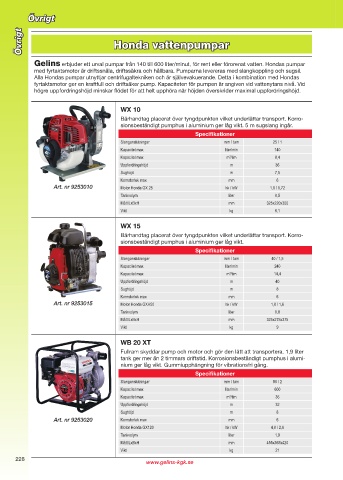 Gelins erbjuder ett urval pumpar från 140 till 600 liter/minut, för rent eller förorenat vatten. Hondas pumpar