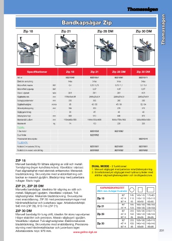 Specifikationer Zip 18 Zip 21 Zip 28 DM Zip 30 DM