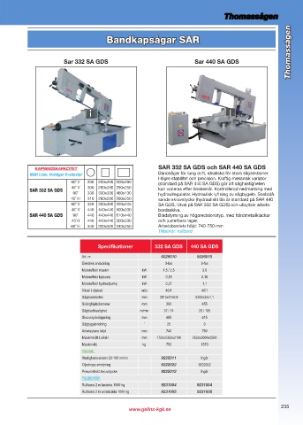 Specifikationer 332 SA GDS 440 SA GDS