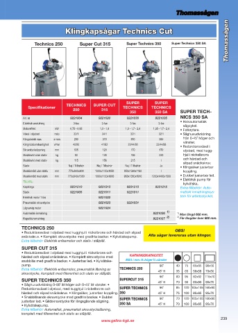 snäckskruv. • Komplett skruvstycke med gradfria backar. • Kylvätskepump. Alla sågar levereras utan klingor.