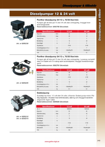 Panther dieselpump 24/12 v, 70/35 liter/min