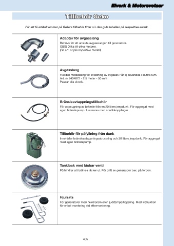 För att få artikelnummer på Geko:s tillbehör tittar ni i den gula tabellen på respektive elverk.