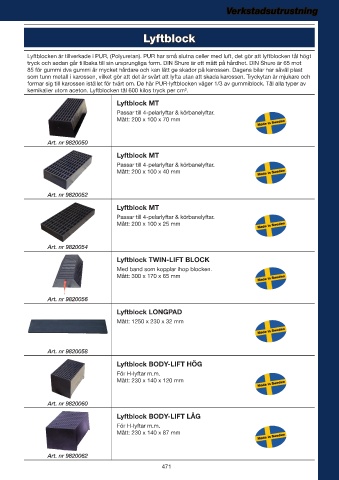 kemikalier utom aceton. Lyftblocken tål 600 kilos tryck per cm².