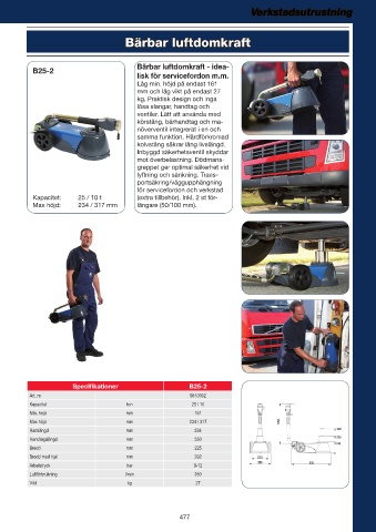 Kapacitet: 25 / 10 t (extra tillbehör). Inkl. 2 st för-