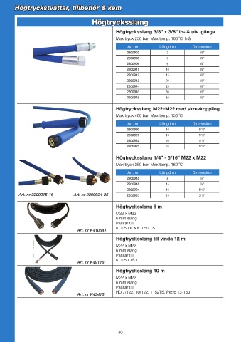 Högtrycksslang 1/4” - 5/16” M22 x M22