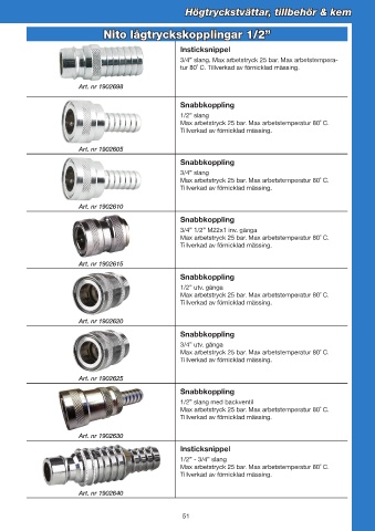 3/4” slang. Max arbetstryck 25 bar. Max arbetstempera-