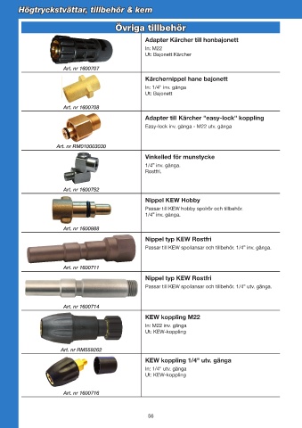 Passar till KEW spollansar och tillbehör. 1/4” utv. gänga.