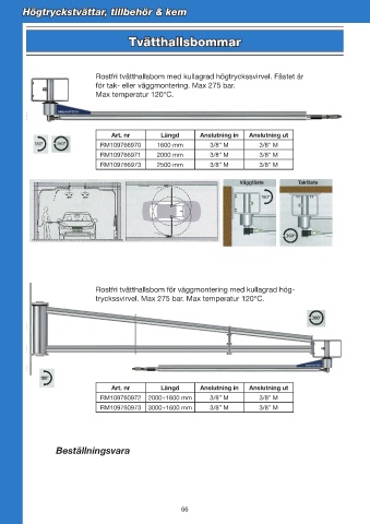 Rostfri tvätthallsbom med kullagrad högtryckssvirvel. Fästet är