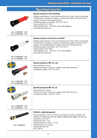 i EPDM gummi. Vridbart munstycke, regleras från stråle via dimma till helt