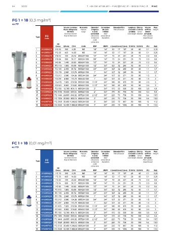 Type FC flow at filter inlet Dimensions connection at Filter volume