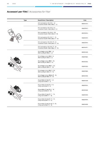 Accessori per filtri / Accessories for filter
