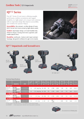 Tool only W1110 47500078001 12 1/4", Hex 20 – 100 135 2,700 3,300 1.05 150 82.0 4.5/3.0 IQ V12 Cordless Tools Accessories