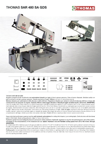 the vice (in automatic option) and descent of the sawframe until the completion of the cut. Automatic motor stop at the end of the cut. Sawframe ascent