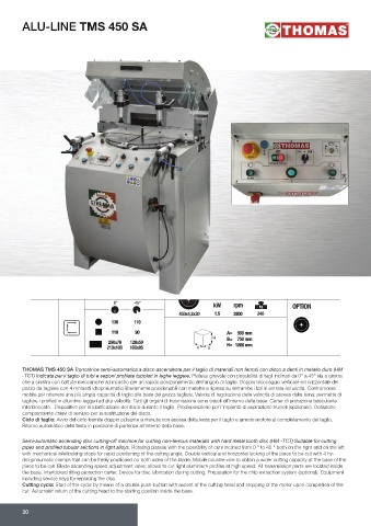 THOMAS TMS 450 SA Troncatrice semi-automatica a disco ascendente per il taglio di materiali non ferrosi con disco a denti in metallo duro (HM