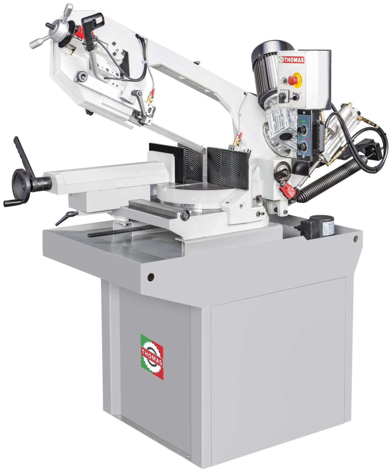 Bandsåg DA med hydraulisk kontrollerad nedmatning med ställbar hastighet för optimerad kapning. Rejäl arbetsyta som vrider sig med sågbladet ger ett stabilt anhåll av sågmaterialet. Såg cykel: manuell öppning av skruvstycket. Materialet spänns fast med en snabbjustering och en handspännare. Motorn startar med en brytare på sågramen. Sågningen startar och sågbygeln går ner, när sågningen är klar så stannar sågen och även kylpumpen automatiskt. Sågen gerar från 0° till 60° höger och 0° till 45° åt vänster. Växellådan går i oljebad. Sågramen och skruvstycket är i gjutjärn. Säkerhetsbrytare på bladskyddet och bladspänningen. Två hastigheter. Precisionsstyrning av bladet med hårdmetallklackar och justerbara lager.