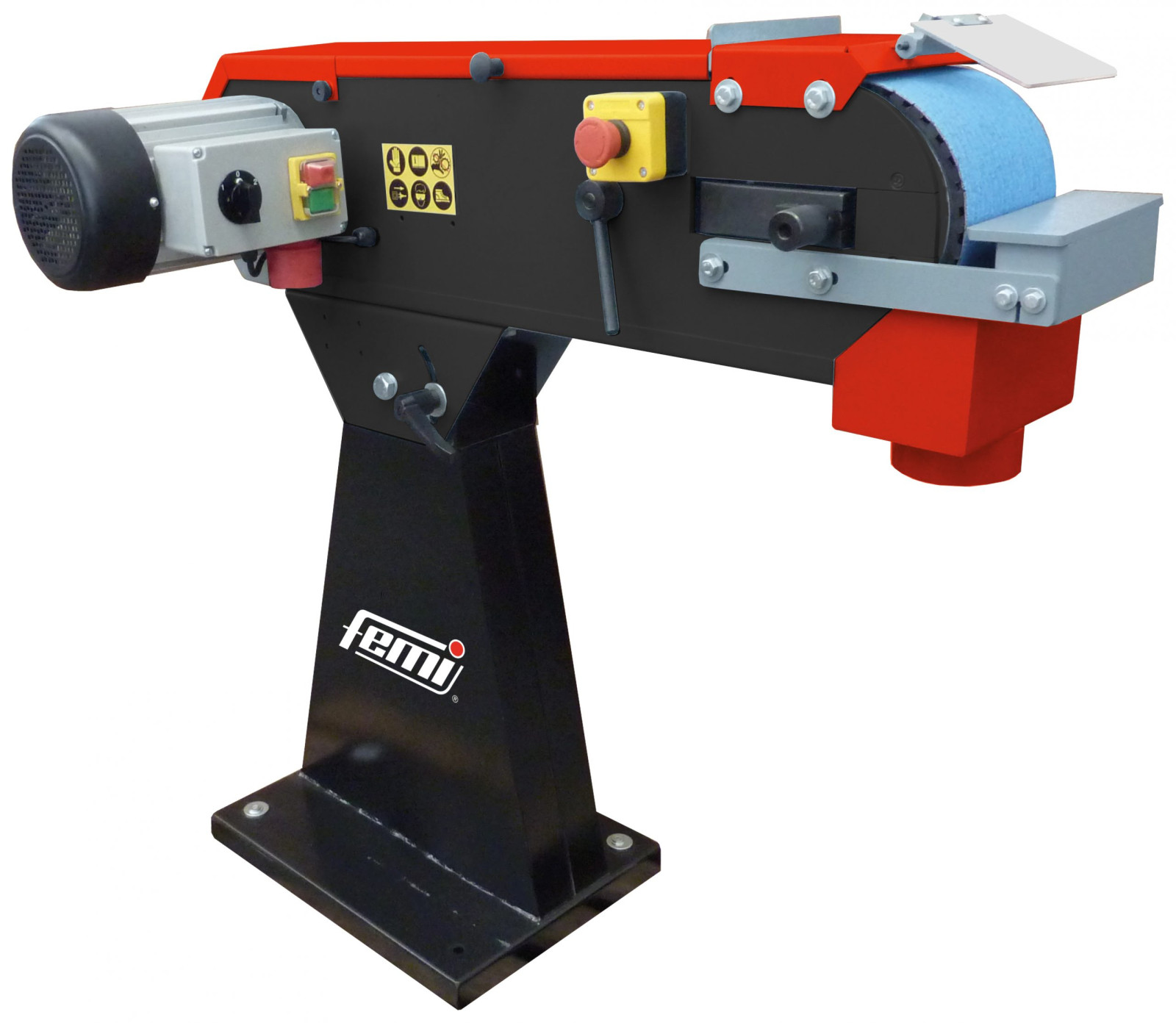 Tyst och pålitlig 3-fas induktionsmotor tillsammans med en arbetshöjd på 960 mm gör denna till en ergonomisk slitvarg i verkstaden. Levereras med ett zirkoniumbelagt slipband med 60 korn. Slipbordet är vinklingsbart och ger möjlighet att slipa på både det släta bordet eller mot ett anhåll som medföljer.