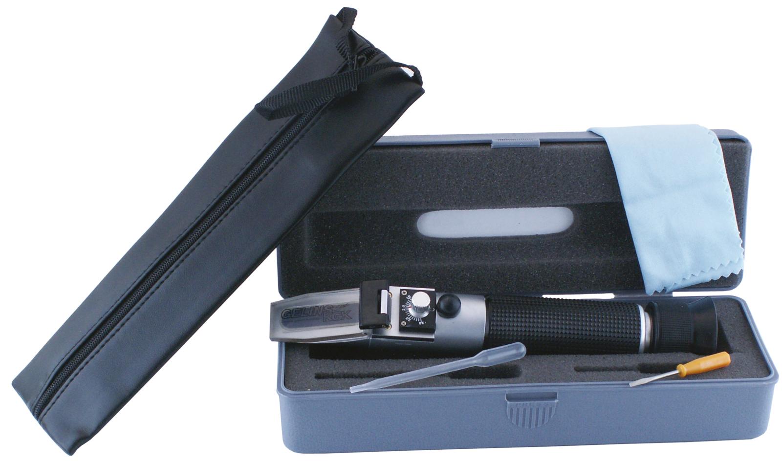 Detta är ett optiskt vätskeprovare som mäter bromsvätskans (DOT 4) vatteninnehåll och vätskans kokpunkt. Bromsvätska är mycket hydroskopisk, har lätt för att ta upp vatten, varvid ångbildning kan uppstå vid bromsning, som försämrar bromsverkan betydligt. Vid kokpunkt under 220 °C är bromsvätskan påverkad och under 180 °C bör den absolut bytas. Tillverkad i metall. Levereras komplett i plastbox. Ett enkelt sätt att hålla rätt koncentration på sin vätska vilket är avgörande för lång livslängd.