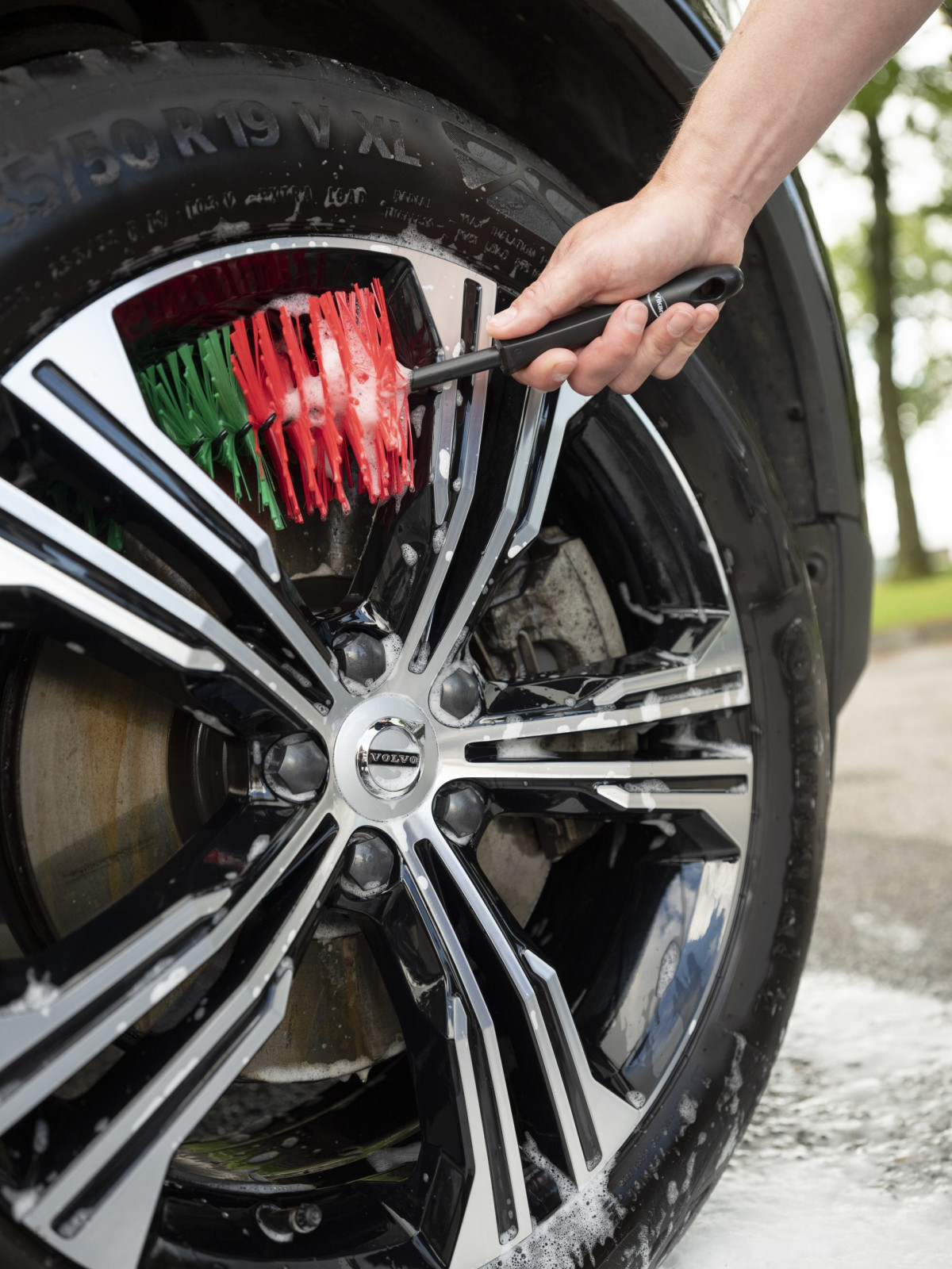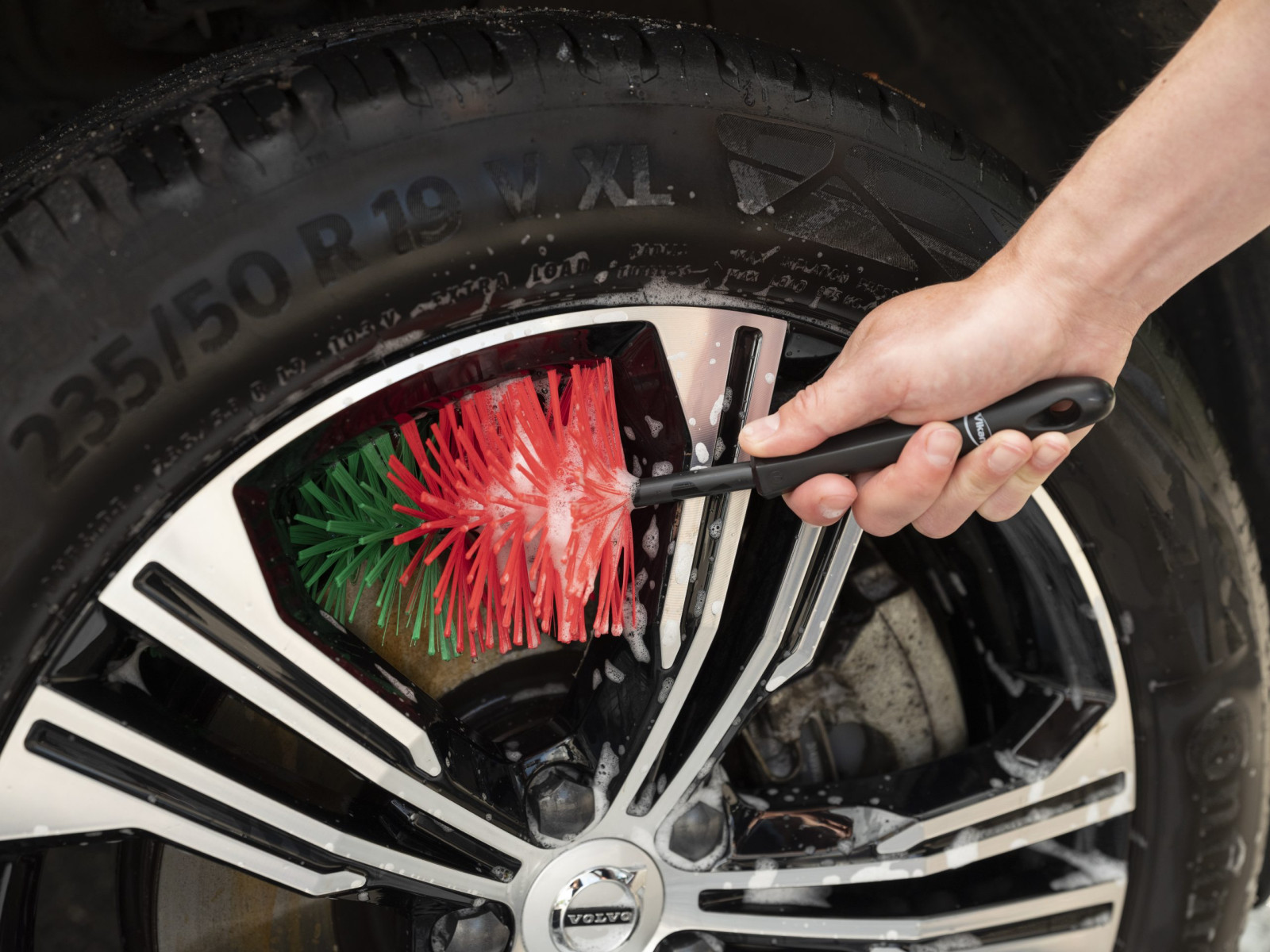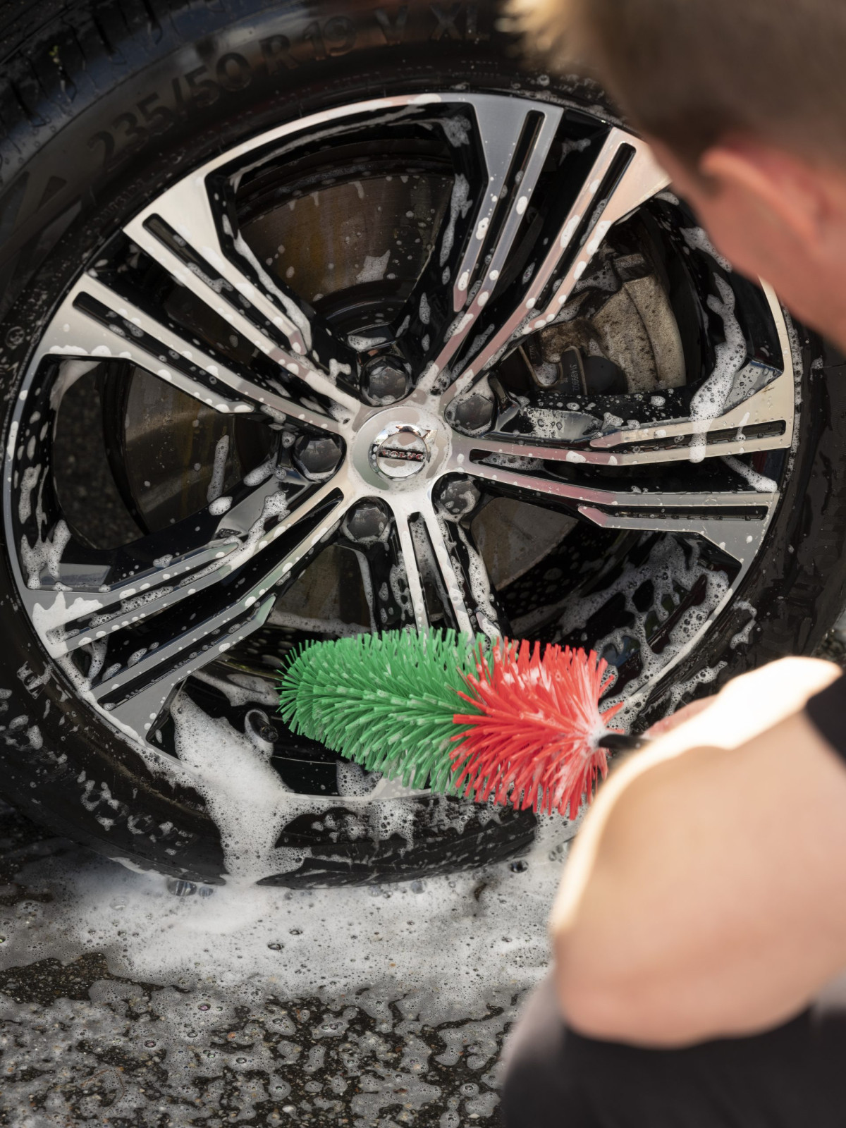 Stor och lång fälgborste som har möjligheten att rengöra hela fälgen. Med det skyddande höljet på skaftet, i änden samt de mjuka borststråna bidrar de alla till att skydda fälgen. Rörformen når in i hjulets fördjupningar och trånga håligheter.