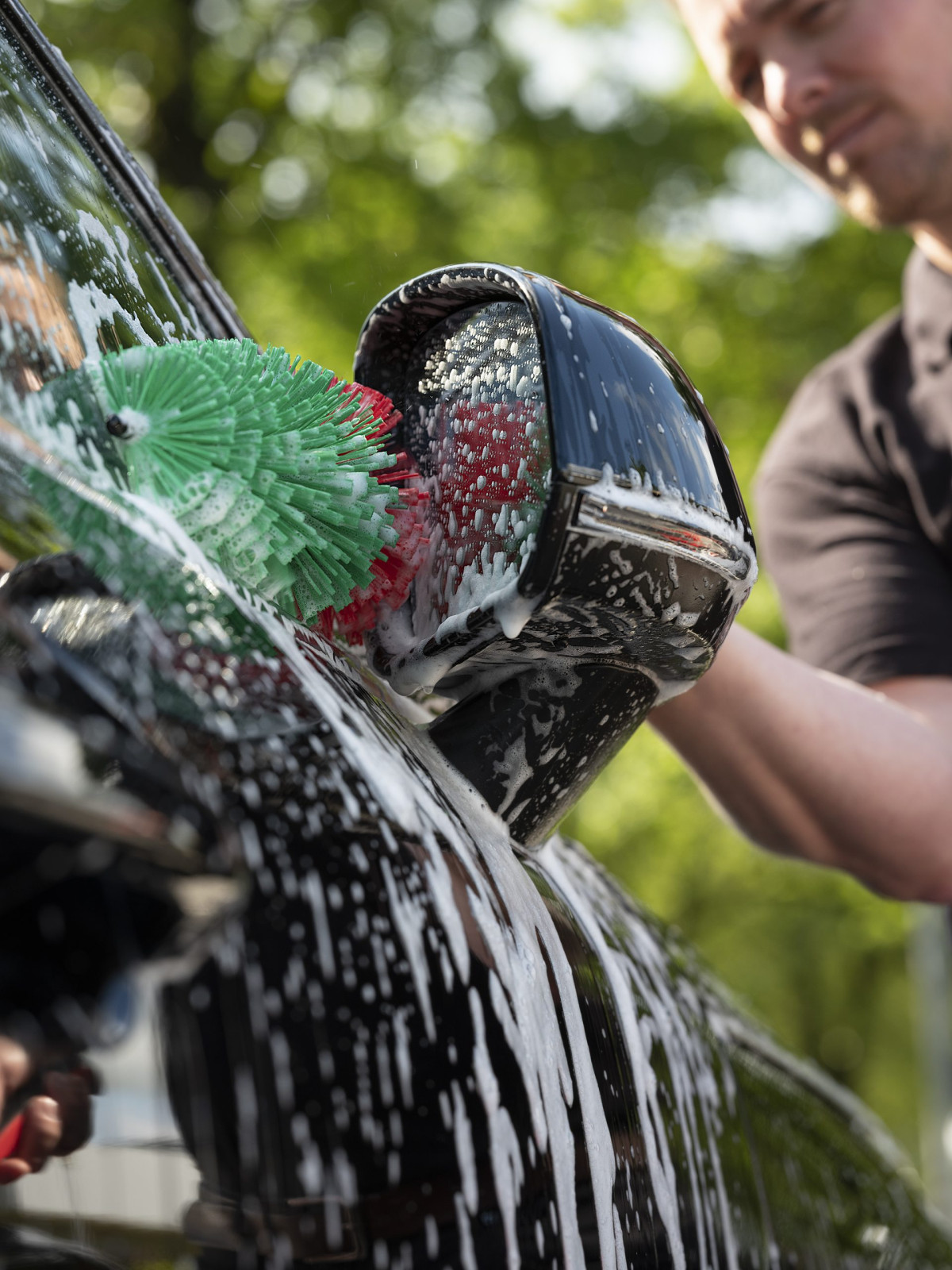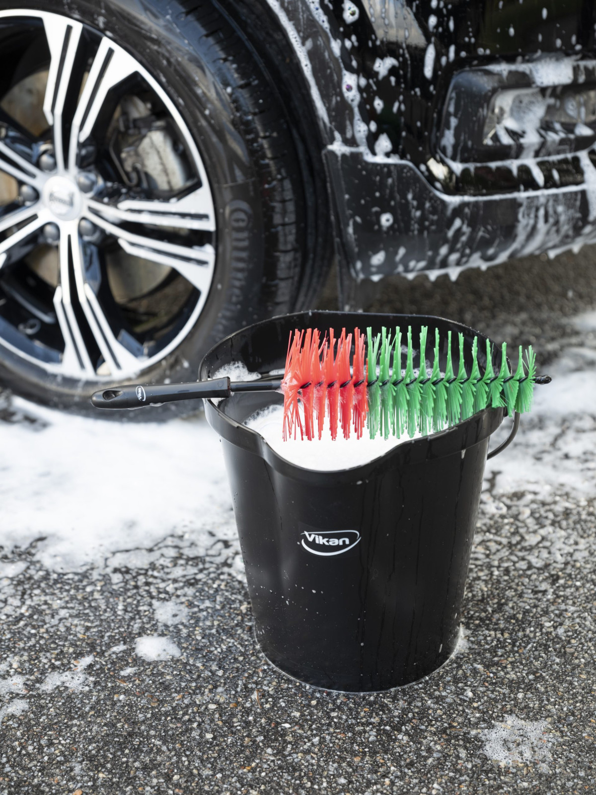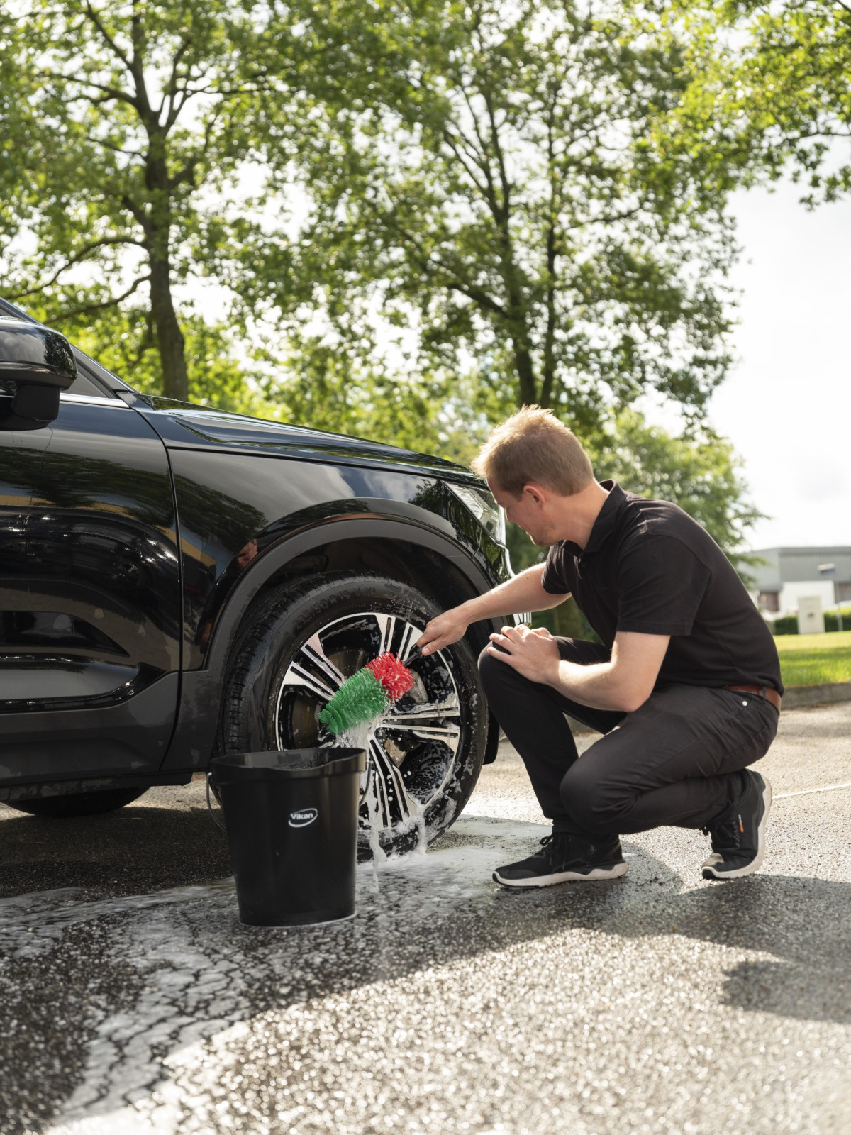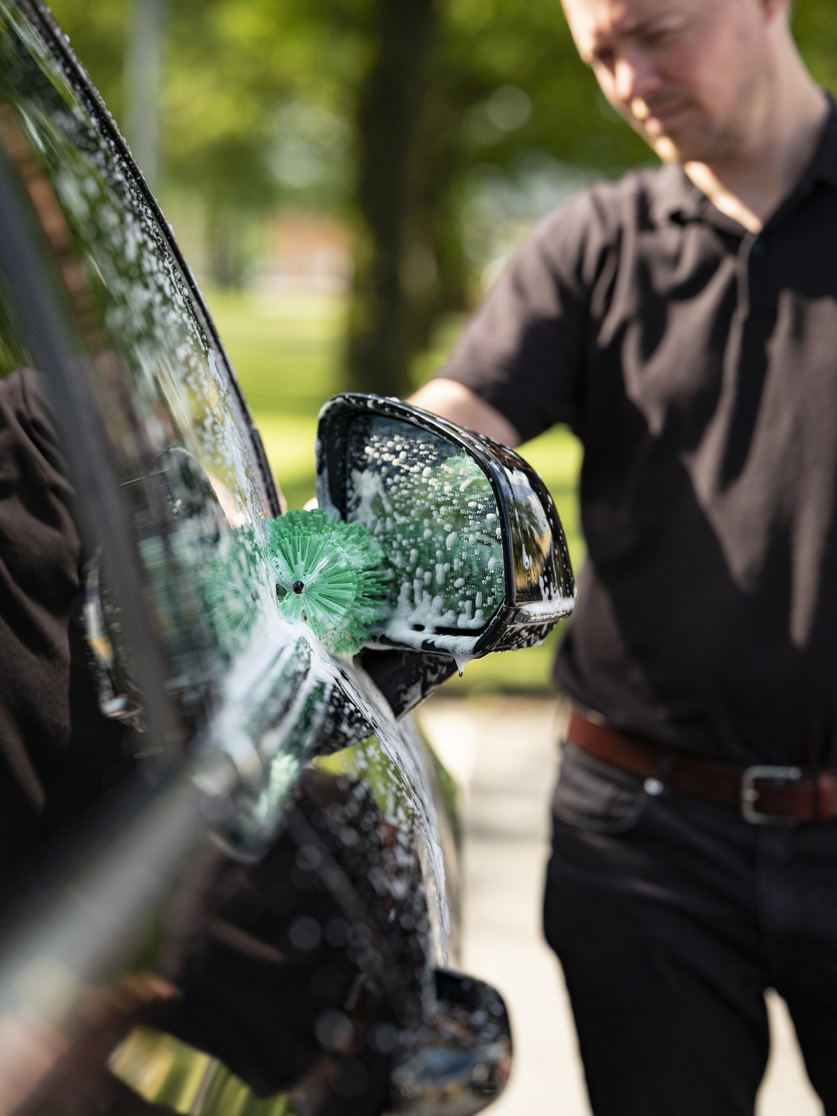 Stor och lång fälgborste som har möjligheten att rengöra hela fälgen. Med det skyddande höljet på skaftet, i änden samt de mjuka borststråna bidrar de alla till att skydda fälgen. Rörformen når in i hjulets fördjupningar och trånga håligheter.