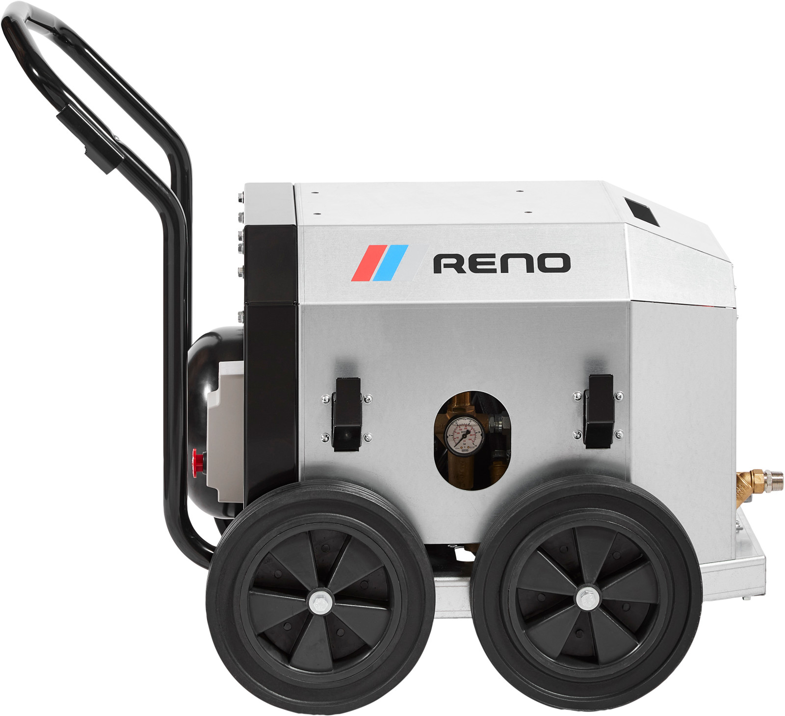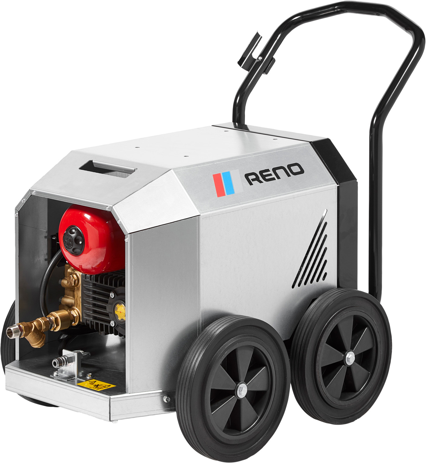 Högtryckstvätt för industribruk med start och stopp automatik. Tvätten är utrustad med lågvarvig interpump, kolvarna är tillverkade av keramik, pumphuset av mässing monterade i en stabil stålram med luftgummi hjul.