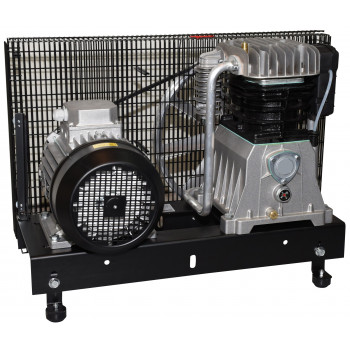 Balkmonterade kompressorblock med motor och remskydd för enkel montering eller komplettering.