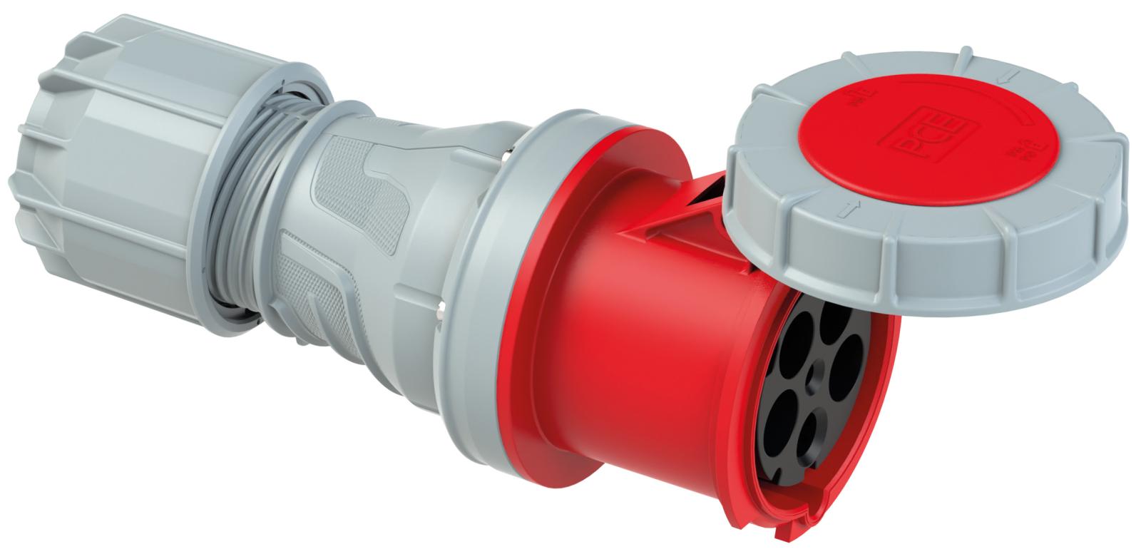 CEE-uttagsdon 400 volt. Dragavlastade och mycket slagfasta. Resistenta mot syror och alkalier. Strömledande komponenter tillverkade i mässing. Självstängande lock på skarvuttagen.