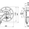 Slangvinda försedd med ställbara utmatningsarmar. Lätt att placera, även i trånga utrymmen. Kan även takmonteras. Vindan är pulverlackerad och utrustad med returfjäder. Kan kompletteras med svängbart väggfäste om slangen skall dras ut eller matas in i sidled. Slitaget på vindan blir mindre och slangen rullas upp jämnare.  Oljebeständig gummislang.