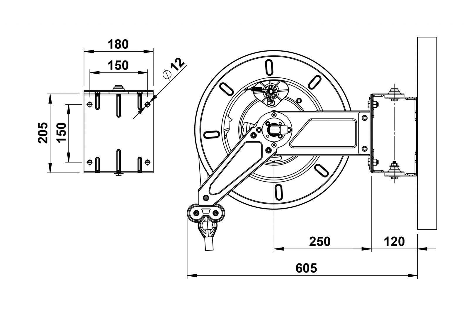 Slangvindor försedda med ställbara utmatningsarmar. Lätta att placera, även i trånga utrymmen. Kan även takmonteras. Kan kompletteras med svängbart väggfäste om slangen skall dras ut eller matas in i sidled. Slitaget på vindan blir mindre och slangen rullas upp jämnare. Vattentemperatur max 150 °C. Stålarmerad gummislang. Rostfri.