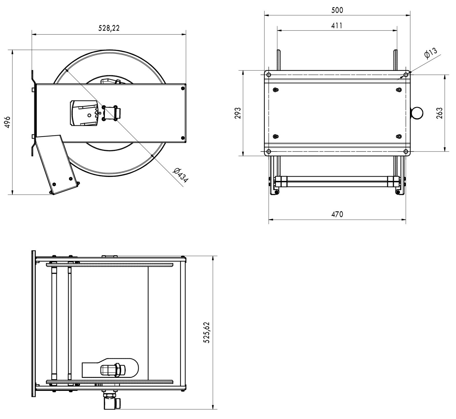 Automatisk återfjädrande slangvina. Levereras med slangstopp. Svirveln tål 150 °C.
