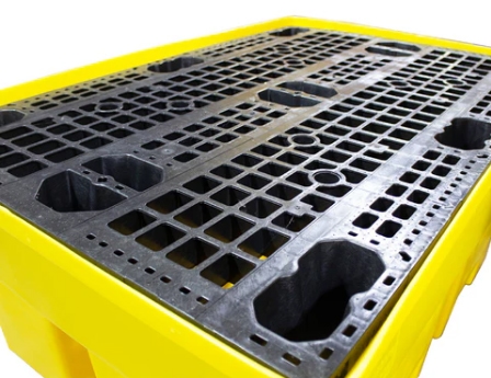 Spillpall i PE (polyeten) för 2 x 205 liter fat med 4-vägs gaffelfickor för enkel förflyttning. Går att transportera med palllyftare. Robust konstruktion och användarvänlig. För lagring och avtappning av aggressiva kemikalier. Lätt att förvara och rengöra. Max belastning 1200 kg.
